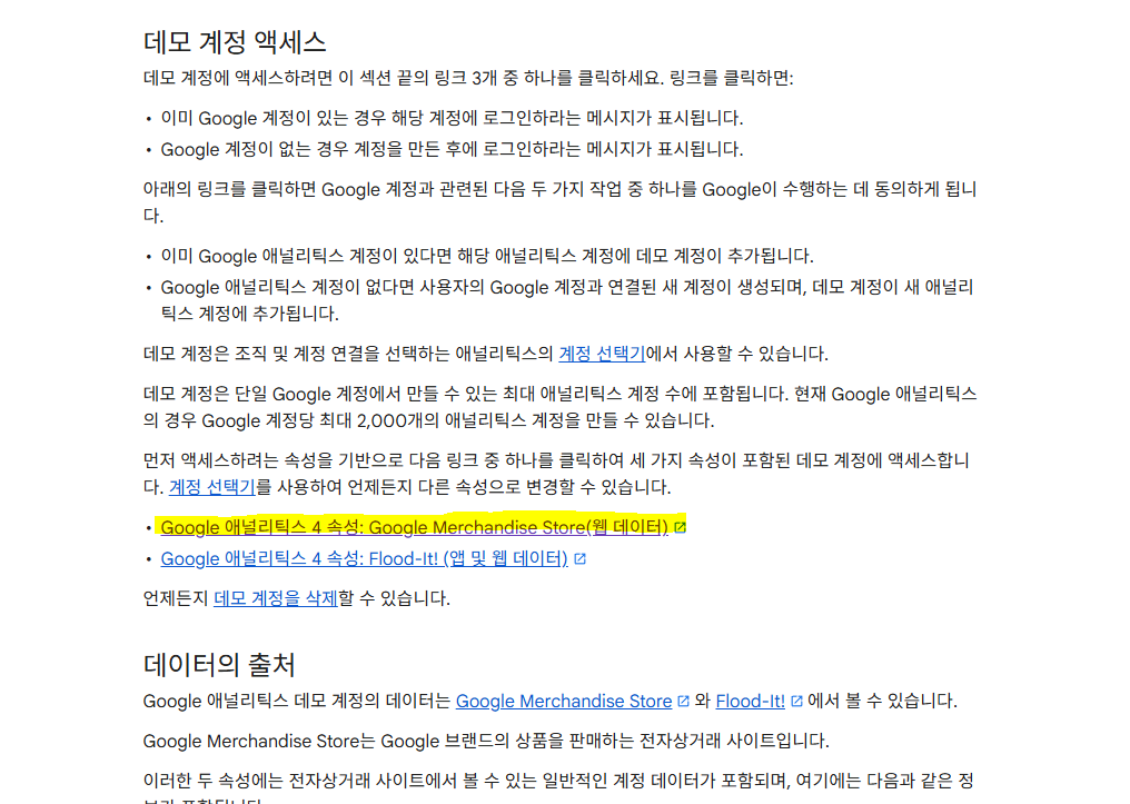 (물론 후술 하게 될 GA4 사용법 중 본인의 계정을 따로 파야만 볼수있는 기능들이 있다. 이건 어디까지나 나의 계정에 분석할 데이터양이 너무 없기때문에 "함 봐라" 이런 뜻. 따로 '이건 데모에서 이건 본인 계정에서' 라고 적어두질 않을테니 "미래의 나야 알아서 판단하렴")