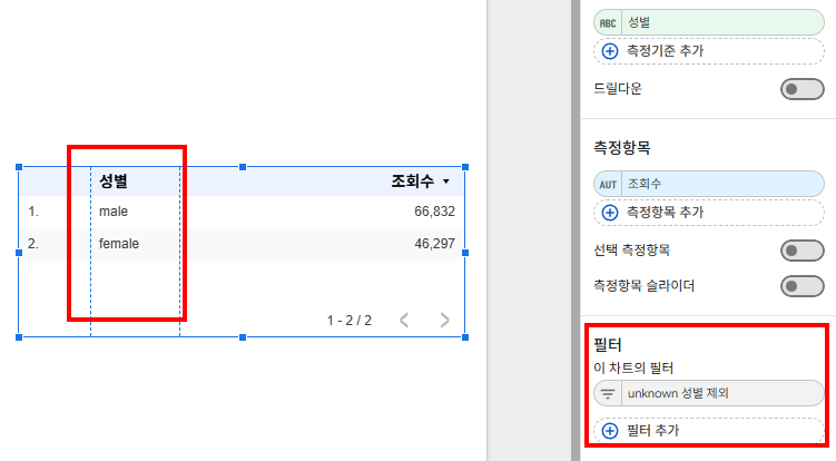 성별 필드에서 unknown 을 제외 시켜야 하기에 아래와 같이 설정해준다.